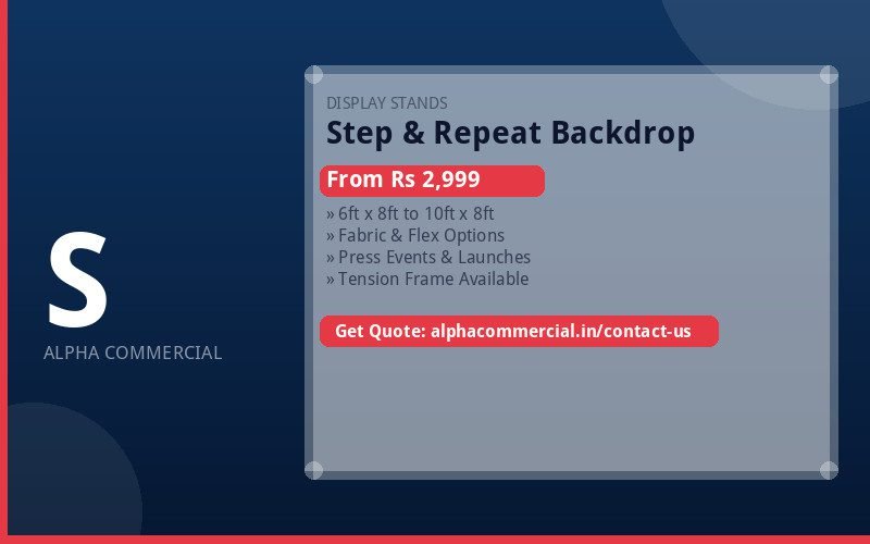 • Full-Colour Event Backdrop — custom design with graphics, sponsor logos, and branding. Ideal for product launches and award shows.
